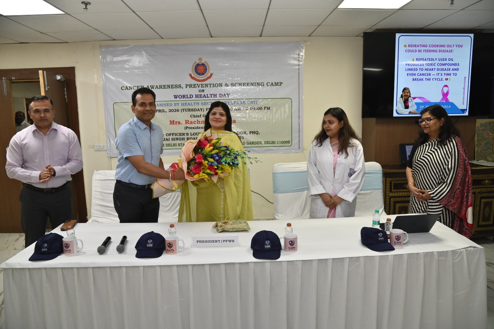 कार्यक्रम में PFWS की अध्यक्ष रचना गोलछा और दिल्ली स्टेट कैंसर इंस्टीट्यूट की विभागाध्यक्ष (HOD) डॉ. प्रज्ञा शुक्ला की गरिमामयी उपस्थिति रही। डॉ. शुक्ला ने उपस्थित पुलिसकर्मियों को कैंसर के विभिन्न प्रकार—जैसे ब्रेस्ट कैंसर, सर्वाइकल कैंसर और ओरल कैंसर—के शुरुआती लक्षणों, जोखिम कारकों और बचाव के उपायों के बारे में विस्तार से जानकारी दी। उन्होंने विशेष रूप से नियमित स्वास्थ्य जांच, संतुलित जीवनशैली और समय पर चिकित्सकीय सलाह को कैंसर की रोकथाम में अत्यंत महत्वपूर्ण बताया।