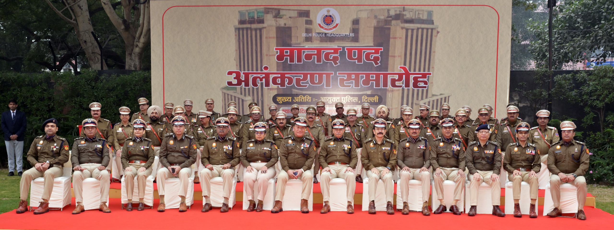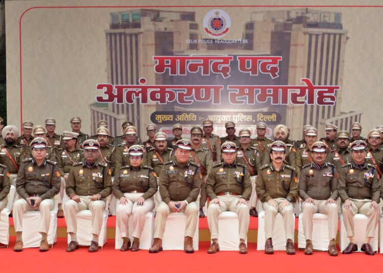 नई दिल्ली – दिल्ली पुलिस मुख्यालय स्थित आदर्श ऑडिटोरियम में मंगलवार को एक भव्य पद अलंकरण समारोह का आयोजन किया गया। इस अवसर पर सेवानिवृत्त हो रहे 137 पुलिस अधिकारियों एवं कर्मचारियों को उनकी सेवानिवृत्ति के दिन उनकी अगली उच्चतर मानद रैंक प्रदान की गई। यह समारोह दिल्ली पुलिस के इतिहास में अपनी तरह का पहला आयोजन बताया जा रहा है।