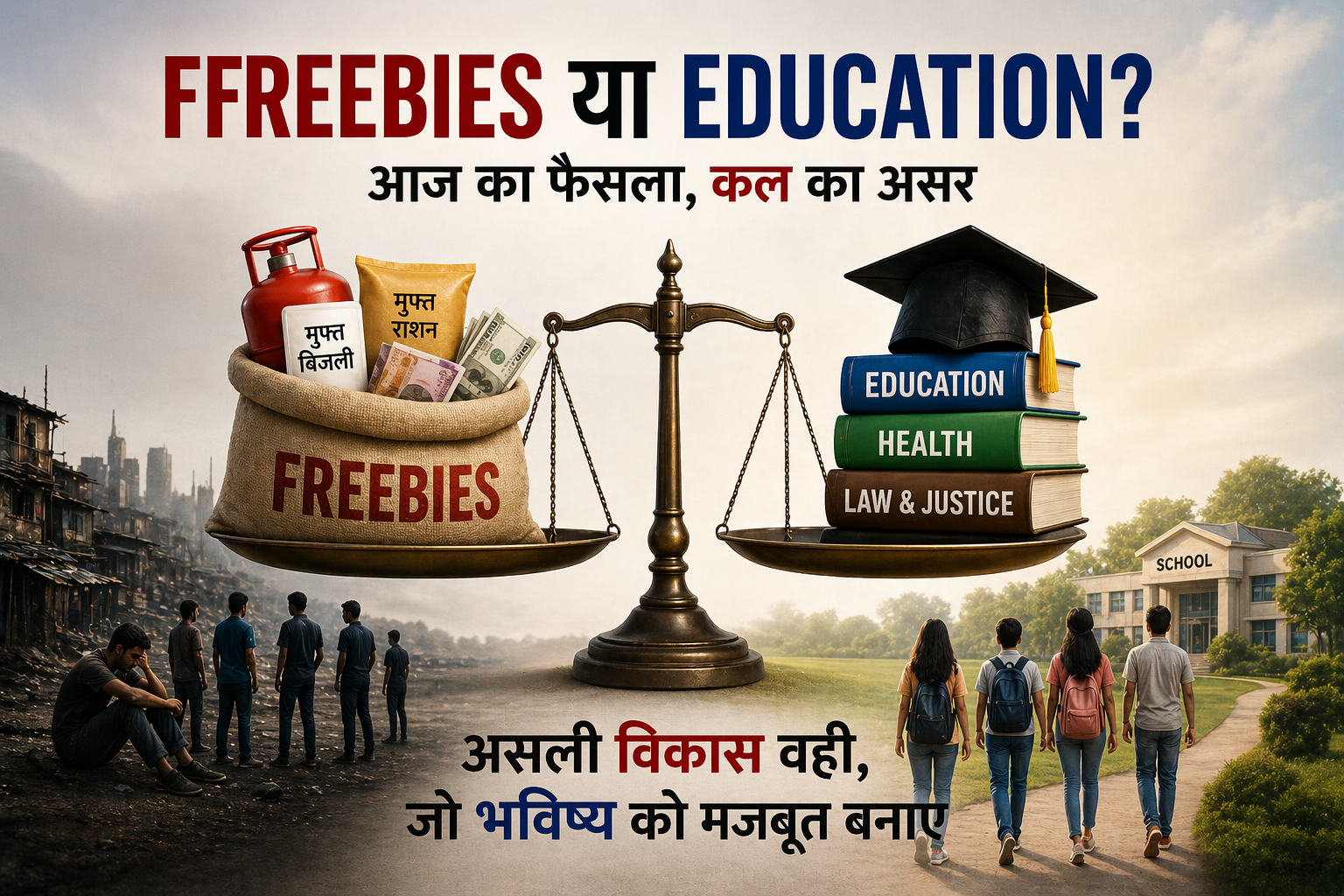 Freebies सहारा दे सकते हैं, लेकिन मजबूत समाज शिक्षा और न्याय व्यवस्था से ही बनता है।