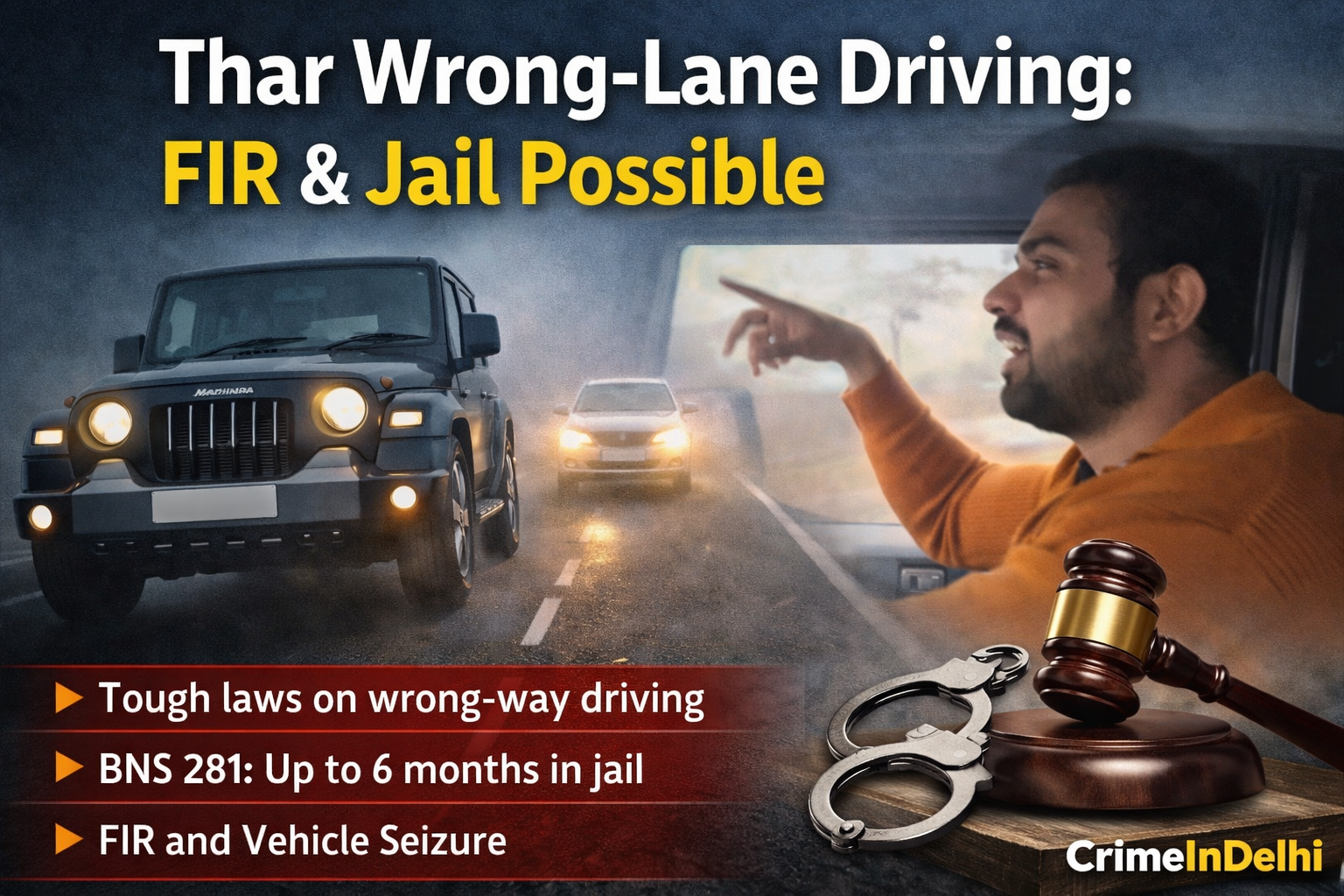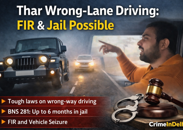 महिंद्रा थार जैसी पावरफुल वाहन चलाते समय सुरक्षा और कानून का पालन अनिवार्य है। गलत दिशा में ड्राइविंग सिर्फ सड़क नियम तोड़ना नहीं, बल्कि जीवन और क़ानून दोनों के लिए खतरा है।